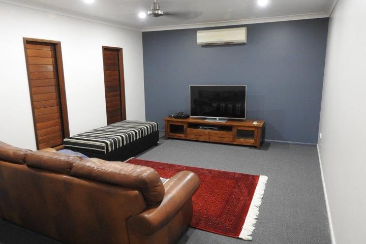 180 Old Dalrymple Road has very nice large, relatively new, beautiful, solid, rendered masonry block home located on the nice peaceful 5 acres. This house is only approximately 16 years old. It has been well built and does not lack any of the modern luxuries. It has large main bedroom with its own ensuite and walk in robe. It has 4 bedrooms total, all which have built in robes and are fully air-conditioned. It also has a very large media room, large lounge room, large kitchen, large dining room, a very nice welcoming patio on the front and a beautiful entertaining patio overlooking the pool out the back of the property. The house also has a second shower/ large bathtub and a second toilet. The main living and dining area has beautiful, raked ceilings making it very spacious and open. The undercover patio which overlooks the pool and backyard is a great area setup for a BBQ, party or for entertaining guests for dinner. The property is very secluded and very peaceful and quiet. The owners say it has both a beautiful sun rise, and sun set.